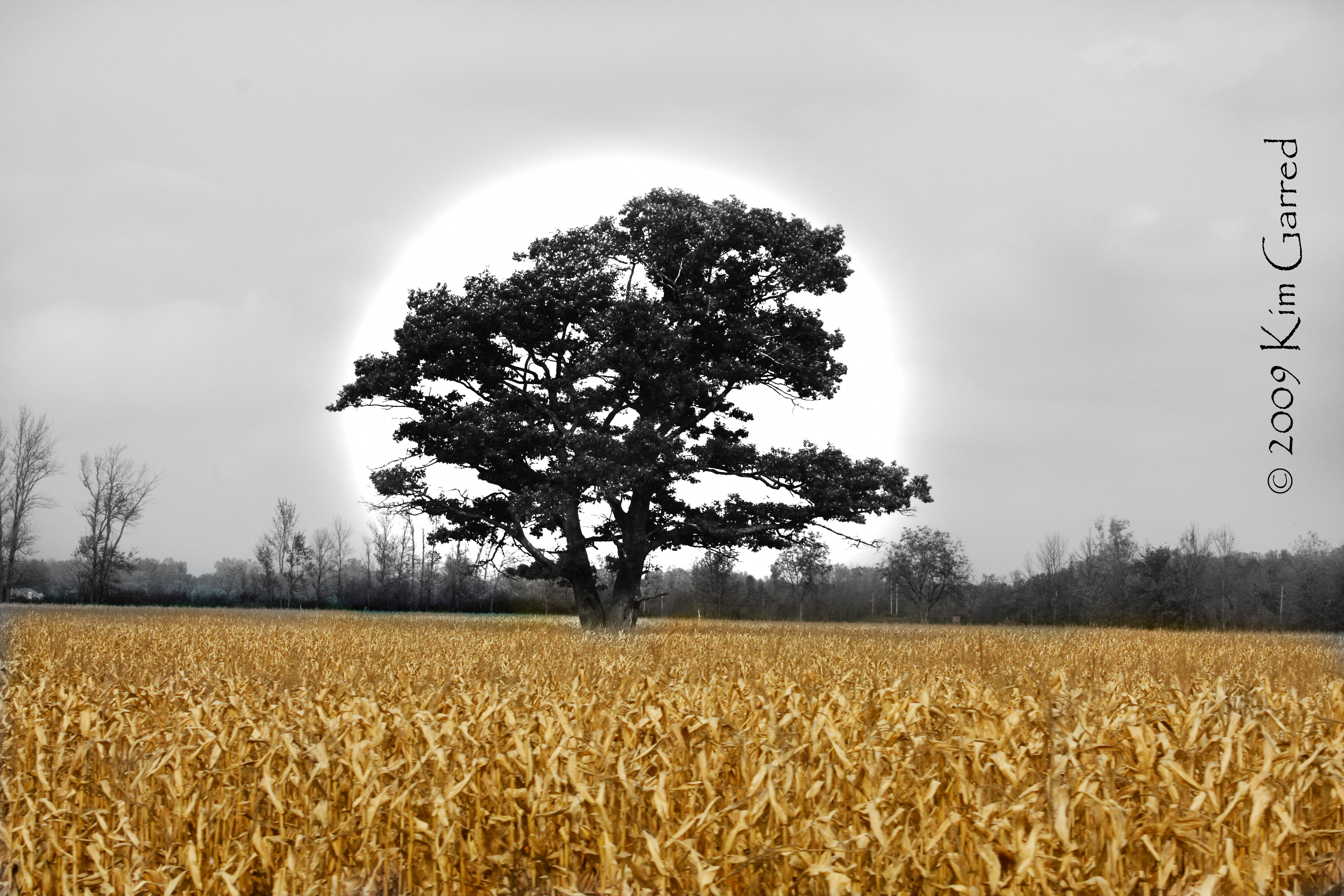 It struck me as I revisited the picture that it seems to be alone in the midst of a corn field. But is it? No, it has the corn. I am sure there are a few fuzzy tailed rodents that have taken up residence as well. But the image stands out as one tree. We are that one tree. Standing, surviving, providing.