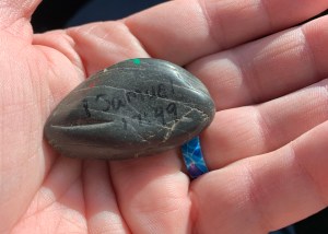 I turned the stone in my hand noticing the smooth warmth. I admired the colored lines from blue, green and red markers on it. Turning it over I found a scripture reference…