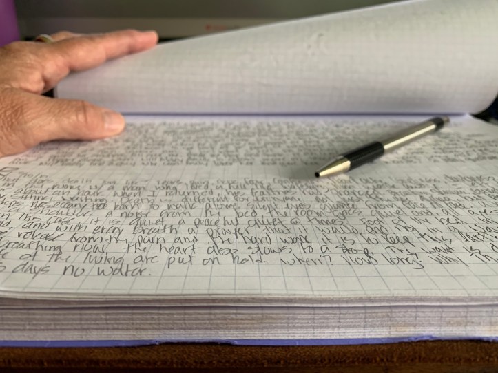 I have been out of sorts. Words have failed me. I sit to write…I sit…and…it is all jumbled up. I feel like I am riding a bike like Ms. Gulch from the Wizard of Oz in Dorothy’s vision of the tornado. Peddling fast going nowhere while everything spins around me. I reach for words only to have them slip through my fingers. To get a hold of them, to wrestle them onto the page is exhausting. But oh the reward is so sweet when the page begins to fill with ticks and tiddles of letters, those letters turning into words, and those words in turn coming to life.
